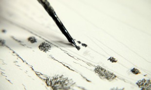 U dizajnu s perom i tintom, sve zavisi od vrste pera koje dizajner izabere. Bilo koji alat kojim se može nanijeti tinta na papir ili druge ravne površine spada u tehniku crtanja perom i tintom. Danas tinte za crtanje dolaze u raznim vrstama i kombinacijama, od crne i smeđe do bijele tinte. Pri crtanju perom i tintom, u zavisnosti od vrha pera, mogu se napraviti tanke, debele, mekane, tvrde, tanke i debele linije.