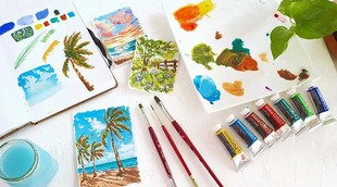 Aquarel, guaš i mastilo za crtanje, kao što im i imena kažu, spadaju u tečne ili kombinovane materijale za crtanje, a svaki od njih ima širok spektar boja. Jedna od zajedničkih osobina ovih materijala je da se pri radu sa njima mogu koristiti različite vrste četkica. Crtanje ovim materijalima obično počinje sa ograničenim brojem boja i tankim, prozirnim slojevima, a sledeći slojevi se nanose tek nakon što se prethodni osuše.