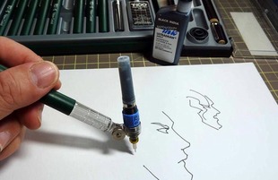 Crtanje markerom, rapidografom, hemijskom olovkom i nalivperom gotovo je isto kao crtanje perom i tušem. Zajedničke osobine ovih alata su spremnik u kojem se čuva određena količina tinte i trag koji ostavljaju na površini za crtanje. Debljina vrha svakog od ovih alata i trag koji ostavlja utiču na kvalitet linija. Na primer, rapidograf sa okruglim i cilindričnim vrhom omogućava crtanje ravnomernih, tankih i vrlo preciznih linija. Debljina vrha markera je raznovrsnija i njime se može napraviti širok spektar linija, od vrlo tankih do vrlo debelih.