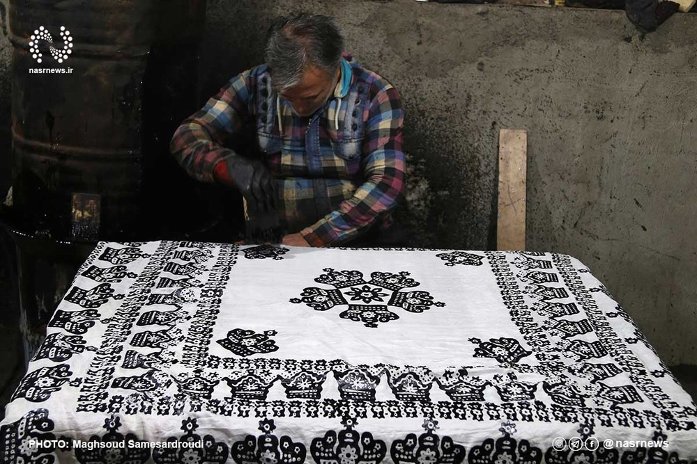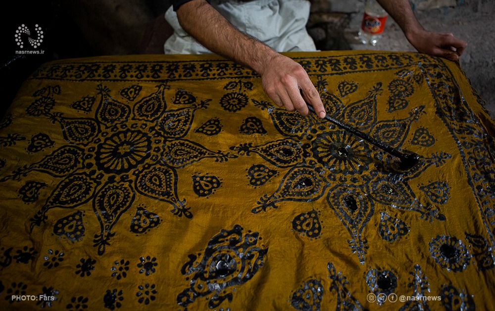 Prvi korak u serigrafiji je namakanje tkanine u mlakoj vodi. Duljina vremena ostavljanja tkanine u vodi ovisi o materijalu i vrsti. To se nastavlja sve dok se ljepilo za tkaninu dobro ne otopi u vodi. U sljedećem koraku, tkanina se stavlja u razrijeđenu otopinu bijelog aluminija kako bi se dodatno povećala njezina mogućnost bojenja. Zatim se tkanina suši i zaglađuje. U fazi tiska koriste se dizajni koji su oblikovani na drvenoj ploči. Ovi dizajni mogu biti izrađeni korištenjem islamskih oblika, prirodnih dizajna, cvijeća i biljaka ili bilo kojeg apstraktnog oblika. Obično, u cloisonné tisku, umjetnik koristi isti pečat nekoliko puta i stvara vrlo privlačnu harmoniju kombinirajući različite oblike jedne s drugima. Radi lakšeg dizajniranja, predlošci su pričvršćeni na drvene ručke, što povećava njihovu težinu i omogućuje primjenu pritiska na površinu tkanine. Tijekom faze uklanjanja kalupa, materijal koji se ne može bojati se topi i drži toplim na izvoru topline. Zatim se kalupi umetnu u materijal i postave na tkaninu. Ovaj rad se naziva i "brtvljenje". Za fiksiranje utisnutih dizajna, utisnuta tkanina se stavlja u otopinu bijelog stipse, a zatim se stavlja na krpu da se osuši. Nakon sušenja, tkanina se stavlja u posudu za boju. Ova boja će biti pozadina tkanine. Zatim se tkanina vraća u otopinu stipse, a nakon sušenja na nju se stavlja papir, odozgo i odozdo, te se zagrijava glačalom. To topi materijal otporan na boju i omogućuje da se dizajni vide. Za uklanjanje masnih tvari s površine tkanine, u dodatnom koraku, ona se stavlja u tvar koja otapa masnoću, poput benzina, a zatim se pere sapunom i vodom. Na kraju se rašire na otvorenom, u sjeni, da se osuše.