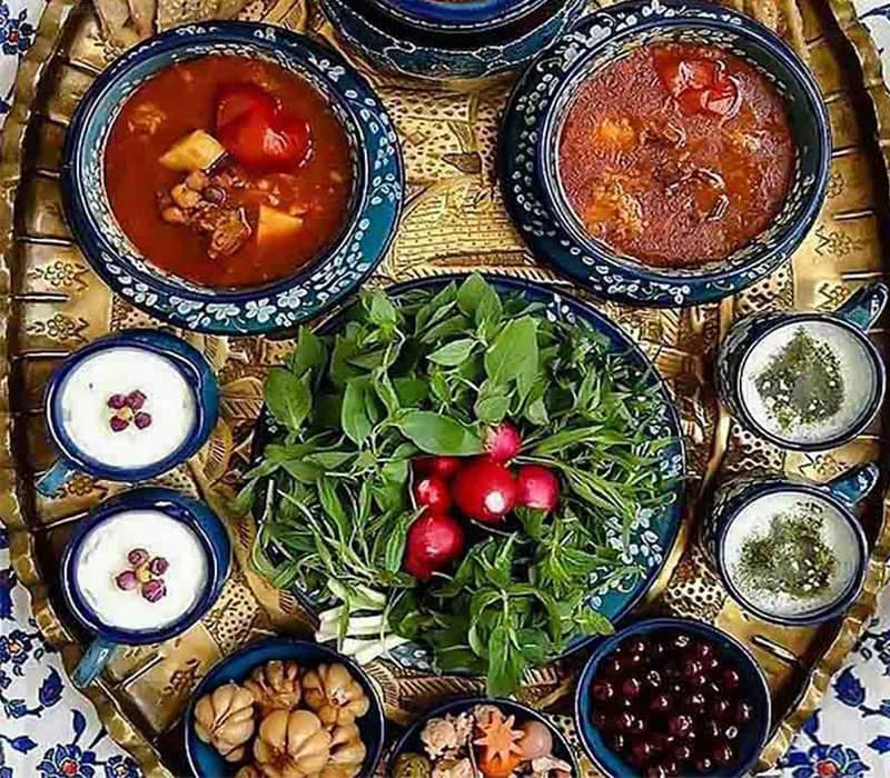 Iranska jela su uglavnom dvije vrste: ona koja se serviraju sa pirinčem i ona koja se služe s kruhom. Jela koja se služe uz hleb su obično tanka tako da se hleb iseče na komade i stavi u njih i jede nakon što se dobro natopi. Postoje i neke namirnice koje se jedu tako što se u parče hleba stavi i konzumira. Ono što slijedi je kratak uvod u neka jazdijska jela koja se poslužuju s kruhom, koja su i ukusna i hranjiva.