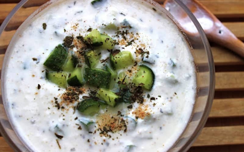 Tradicionalno azdi jelo jednostavne i dijetalne strukture - od kaška i krastavca - koje se zbog hladne prirode jede u vrućim godišnjim dobima, posebno u vrućim ljetnim noćima. Da bi se nadoknadila hladnoća ovog jela, u njega se dodaju orasi, biber, kim, beli i crni luk. Konzumiranje sirovog luka ili vlasca uz ovo jelo može ga učiniti ugodnijim.