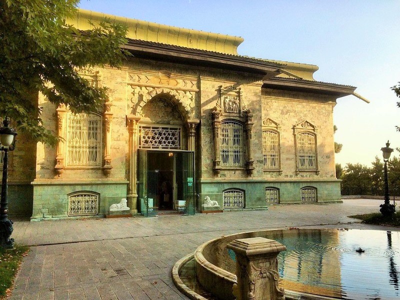 Muzej palače Saadabad Muzeji Palača Saadabad ima ukupno 18 zgrada, svaka s drugačijim stilom i arhitekturom. Od ovih 18 zgrada, 10 se koristi kao muzeji: 1. Zelena palača: Prva palača izgrađena u kompleksu Saadabad za vrijeme vladavine Reza Khana (vladao od 1925. do 1941.) je Zelena palača. Korištenje zelene boje na vanjštini ove palače je razlog njenog imena. Prije Islamske revolucije (1979.), ova je vila bila osobna rezidencija Mohammada Reza Shaha (vladao od 1941. do 1979.), a neki od njegovih privatnih sastanaka održavani su tamo. U Zelenoj palači izložena je zbirka iranske umjetnosti kao što su izrada ogledala, tepisi, iluminacija i rezbarija u gipsu.
