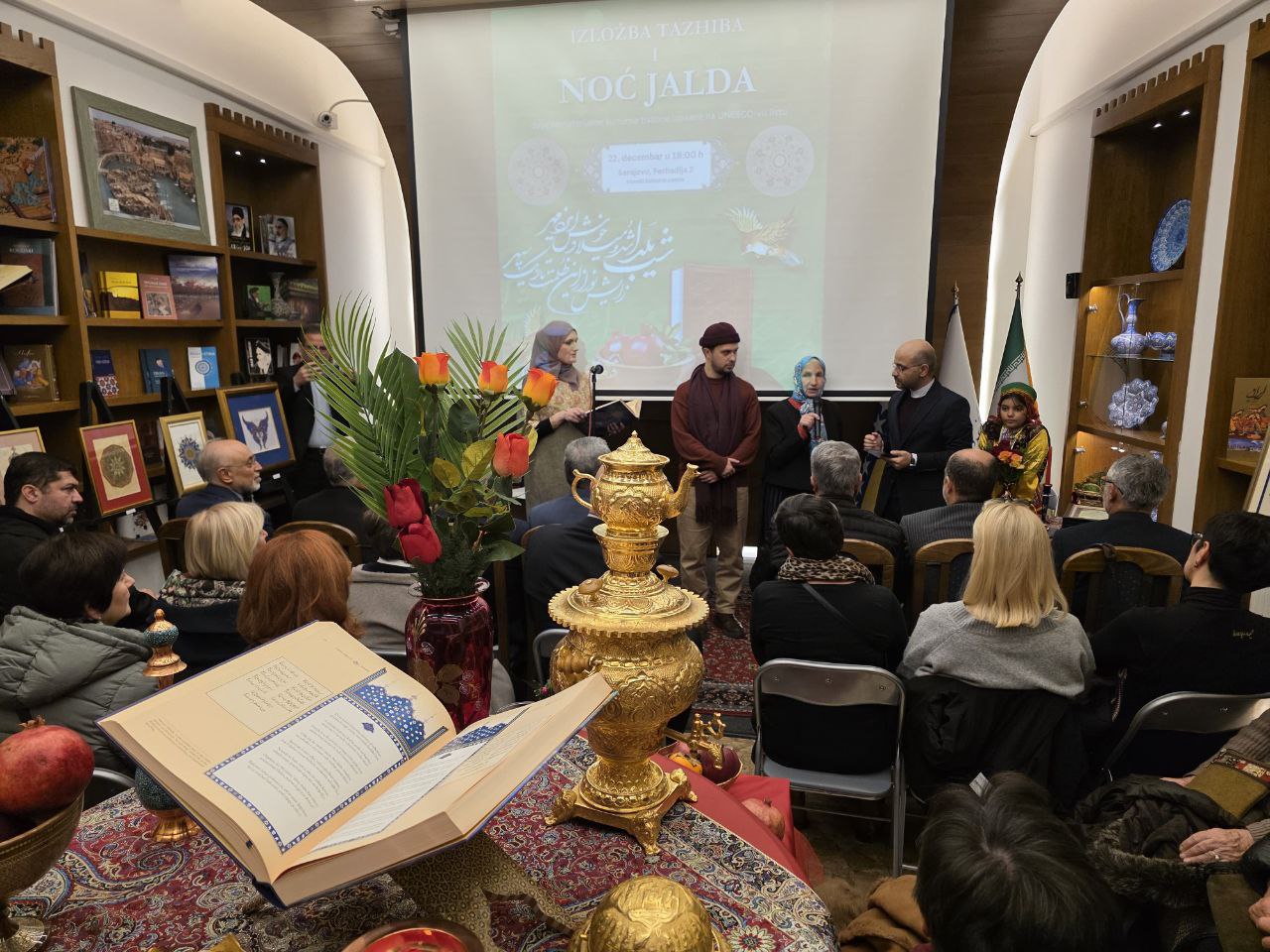 Sinoć je u galeriji Iranskog kulturnog centra Ambasade Islamske Republike Iran, u prisustvu ambasadora Islamske Republike Iran u Bosni i Hercegovini Abazara Ebrahimija Torkmana, konzula za kulturu Islamske Republike Iran u Bosni i Hercegovini gospodina Mohammada Hosseina Ansarija, te delegacije iz Irana predvođene gospodinom dr. Alijem Akbar Salehijem, predsjednikom Fondacije za iranistiku, obilježena Noć Jalda – tradicionalni iranski praznik koji simbolizira najdužu noć u godini i dolazak svjetla, nade i novog početka.Noć Jalda se obilježava širom svijeta među Irancima, uz druženje, poeziju, simbolične plodove poput nara i lubenice te prisjećanje na bogatu kulturnu i književnu tradiciju Irana.U sklopu ove večeri otvorena je i izložba tazhiba, na kojoj su učesnice kursa predstavile svoje radove nastale tokom edukativnog programa. Izložba je pokazala posvećenost, kreativnost i umjetnički napredak polaznica, a na kraju promocije svim učesnicama uručene su zahvalnice.Poseban značaj večeri dao je i dr. Ali Akbar Salehi, koji je ovom prilikom uručio priznanje profesorici tazhiba @selma_pandzic za dugogodišnji predani rad, umjetničku izvrsnost i doprinos promociji iranske kulturne baštine.