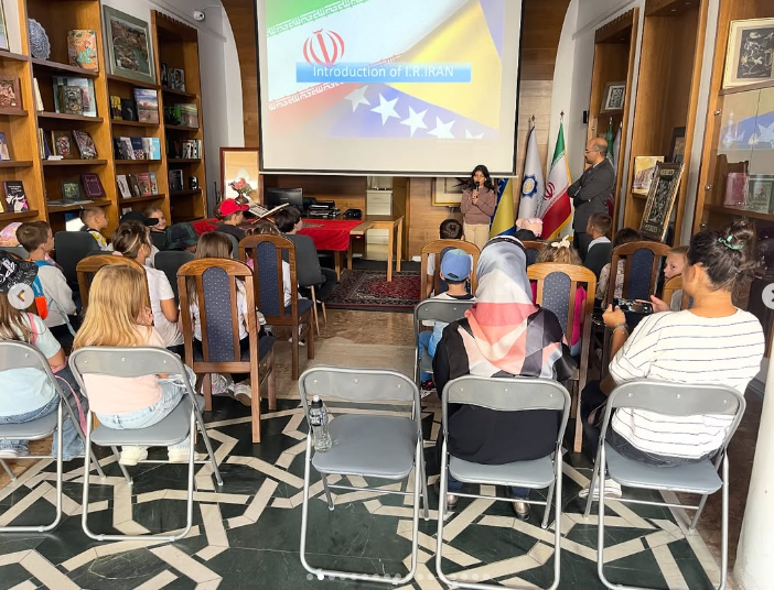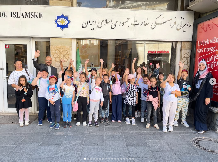 Danas je naš centar obasjala posjeta učenica i učenika iz produženog boravka OŠ “Hamdija Kreševljaković” i njihovih srdačnih učiteljica Amele Avdić i Aldine Đidelija.Djecu je dočekao i pozdravio konzul za kulturu gospodin Mohammad Hossein Ansari i uposlenici Kulturnog centra Ambasade IR Iran.Program je bio prilagođen njihovom uzrastu, pa je prezentaciju o Iranu na bosanakom jeziku održala iranska djevojčica Fatemeh i oduševila svoje vršnjake.Gledali smo, zatim, kratki film o dobročinstvu “A place among the clouds” iranskog režisera (Mohamadreza Kheradmandan) i pričali kako mi to pomažemo ili možemo pomoći drugima. Također, pogledali smo i kratki ekološki film “The Seashell” isto režisera iz Irana (Ali Kargar). Film govori važnosti vode i prirode, klimatskim promjenama i globalnom zagrijavanju... ��������������������Učili smo perzijski jezik sa Fatemeh kroz video klipove sa nazivima voća i životinja.Virtuelno smo prošetali Isfahanom, što je uvijek nešto zanimljivo i nezaboravno našim najmlađima.Djeca su aktivno učestvovala i uživala u programu, te se nadamo da će nam ponovo doćiDivan petak i sedmice završetak!