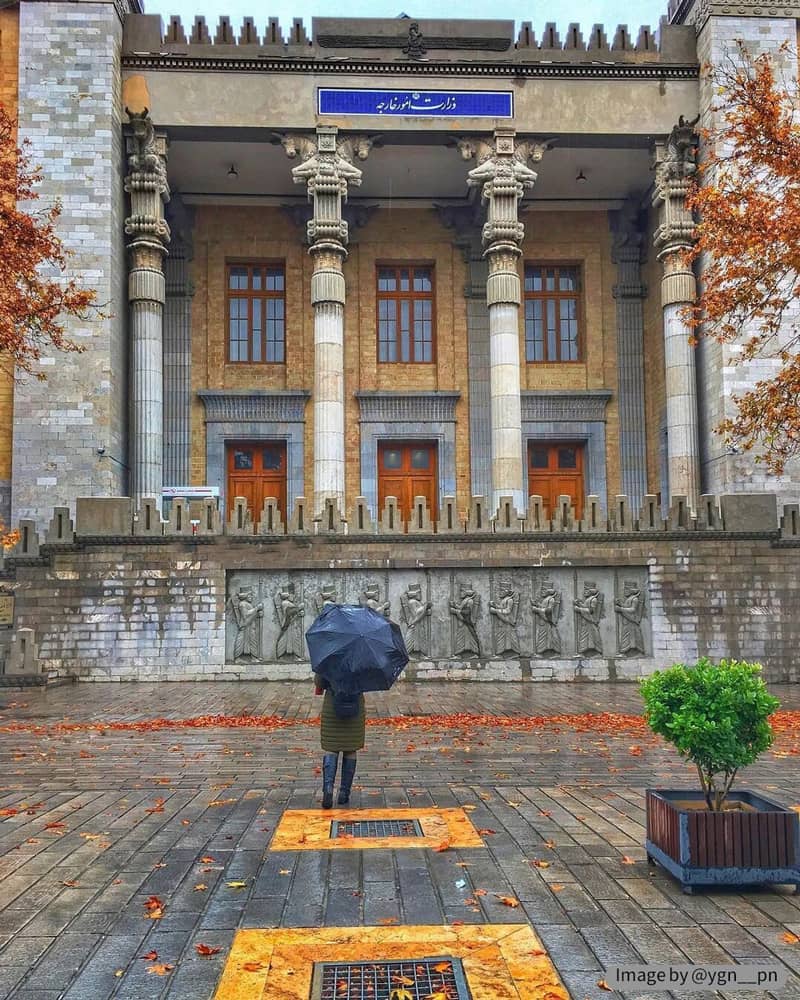 Arhitektonski stil ove građevine naziva se nacionalni stil ili neokamenidski stil. U ovoj zgradi mogu se vidjeti elementi ahemenidske i neoklasične arhitekture. Trenutno je ova zgrada na popisu nacionalnih spomenika Irana i pripada Ministarstvu vanjskih poslova.