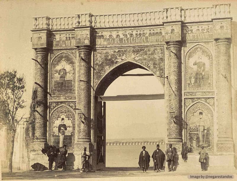 Ova vrata su izgrađena 1922. Kad su vrata izgrađena, s obje strane su izgrađene dvije komore za smještaj stražara, ali te su komore kasnije srušene kako bi se dodale nove zgrade. Vrt koji je Reza Šah naredio da se izgradi postupno je uništen izgradnjom raznih zgrada, ali vrata koja je postavio još uvijek stoje.